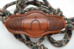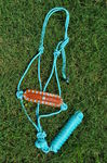These custom halters are made with Genuine Crystal Rivets and Quality Conchos on double stitched halters(halter only/no lead) or 1/4" Braided Poly Rope Halters with 5/8" x 8' leads. Prices vary depending on detail. Custom brands and laser engraving available see 3-A custom halter on this page($65.00) Average prices